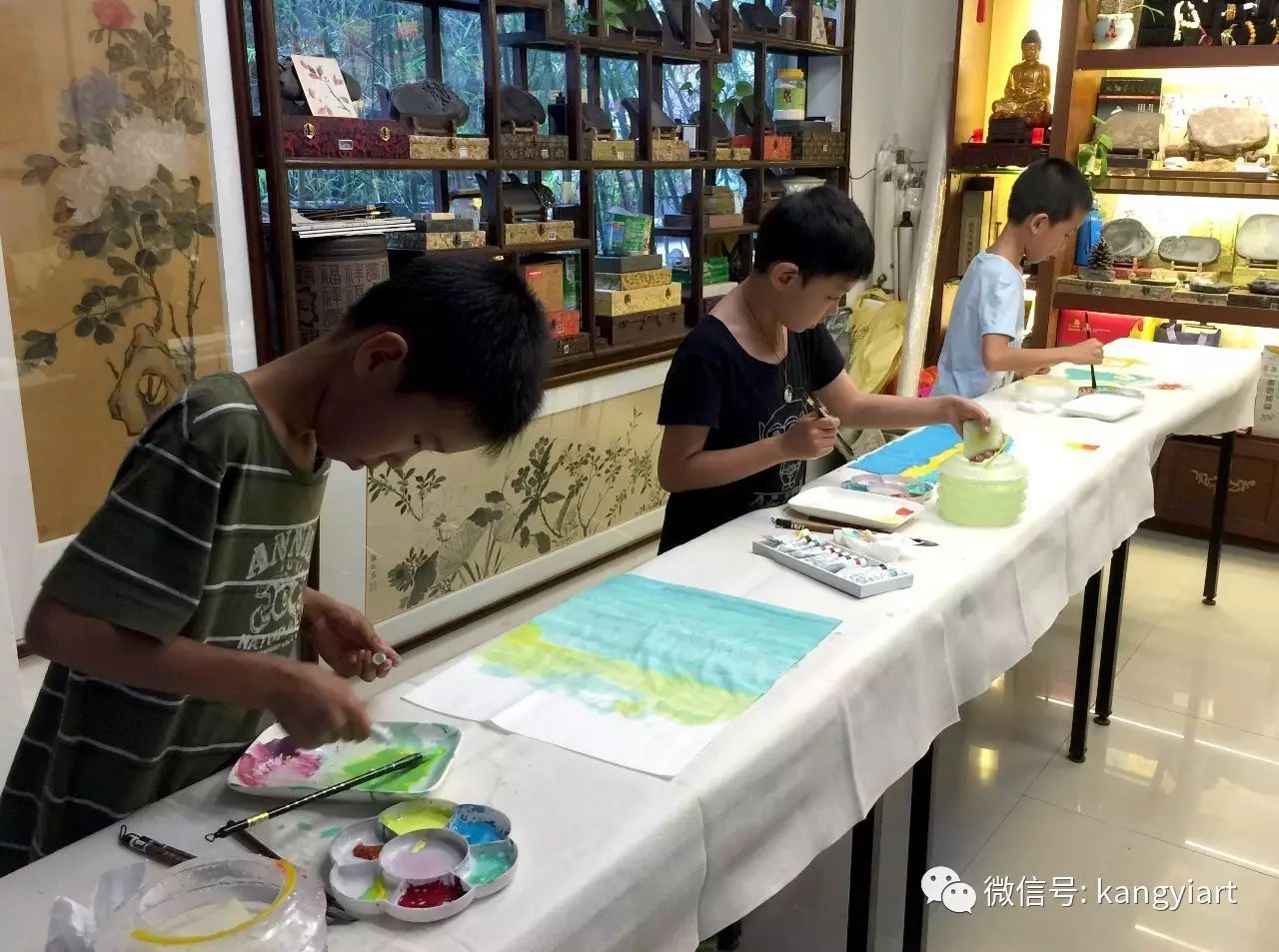以及为了即将来临的暑假也将尝试开设暑期班少儿美术培训班第一期正式招生啦,暑期班将开设书法、国画课程,招生年龄6~12岁,每次两小时。